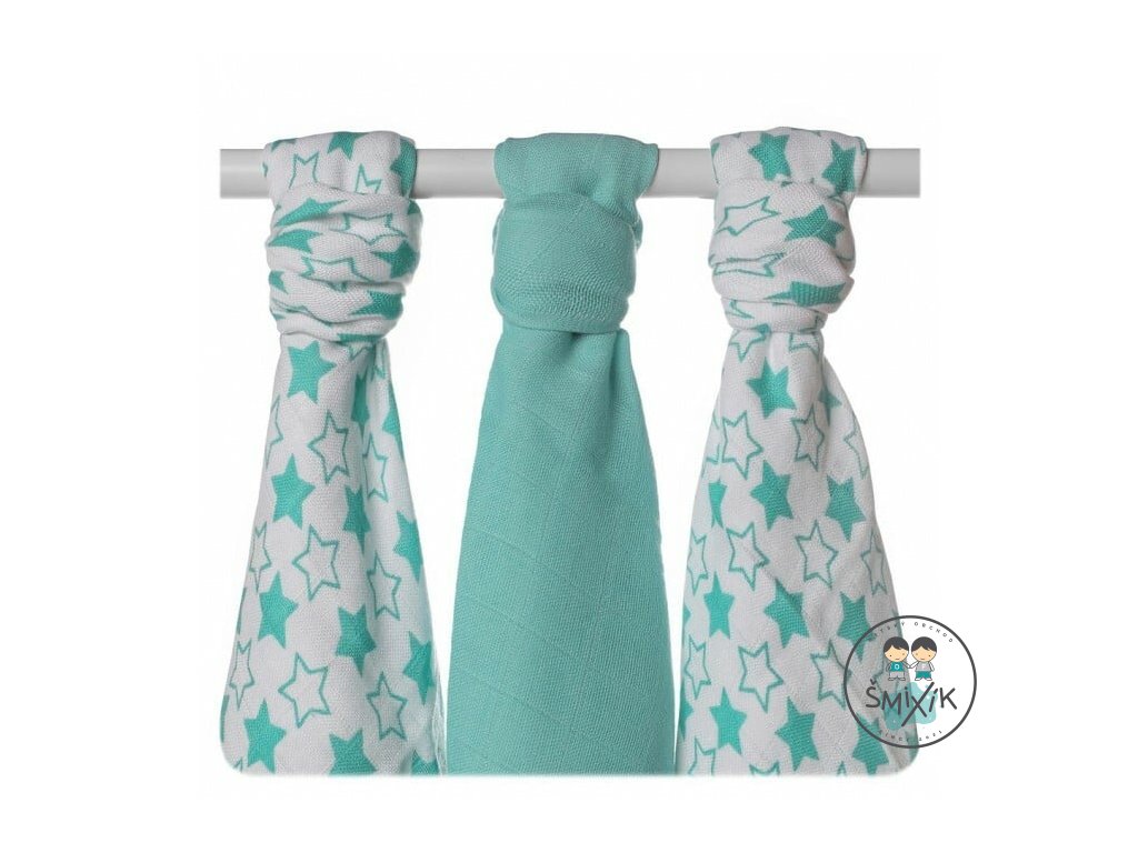 XKKO BMB Bambusová plienka Little Stars Turquoise, 70x70, MIX 3ks