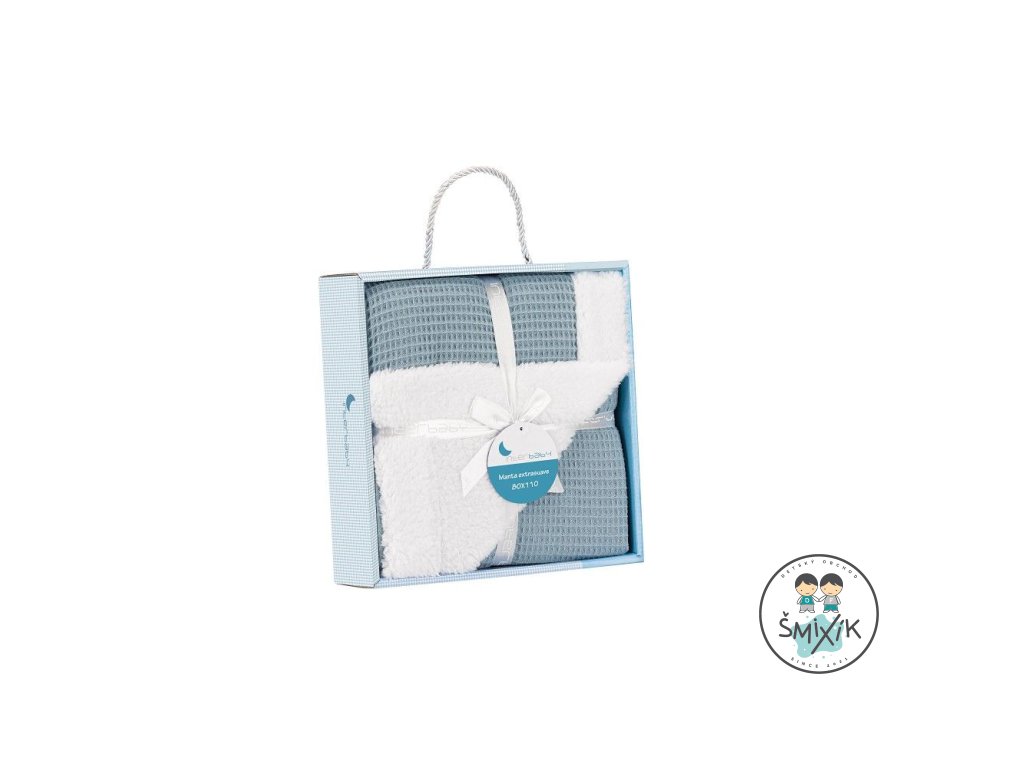 Nádherný darček balený v darčekovej krabičke, vhodný pre narodené bábätká i väčšie deti do troch rokov, ktoré si veľkosť deky užijú. Deka je jemná k detskej pokožke.