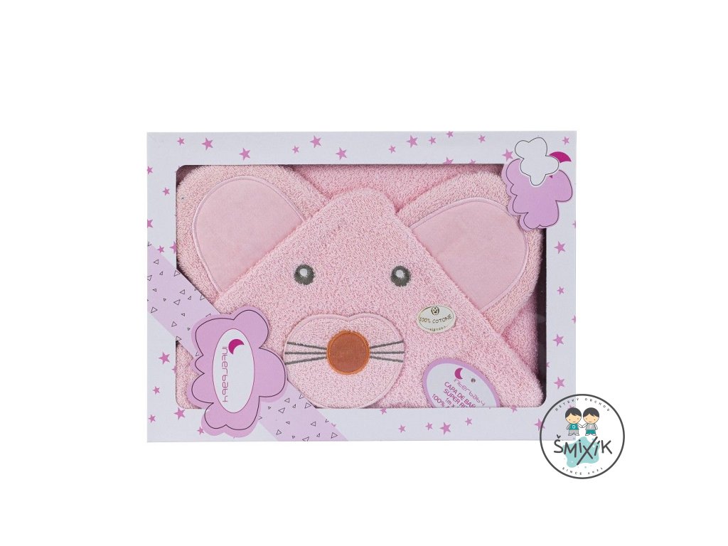 INTERBABY | OSUŠKA froté 100x100 MYŠKA - ružová