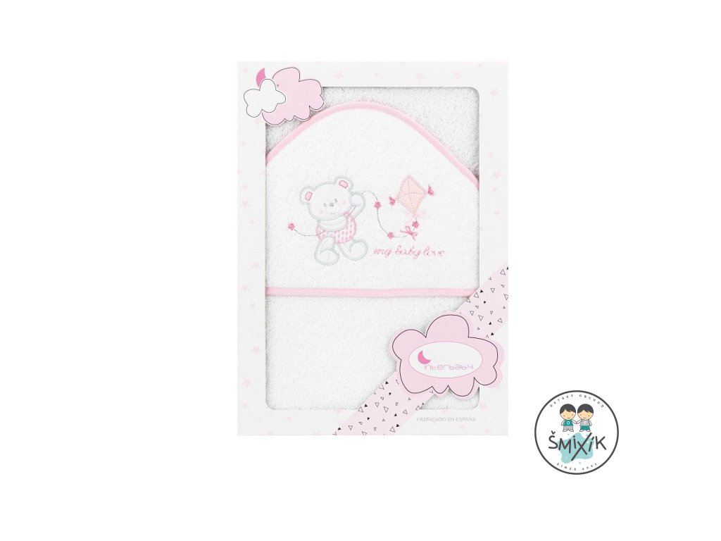 INTERBABY | OSUŠKA froté Medvedík s drakom - bielo/ružová
