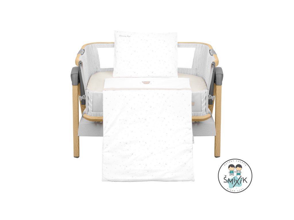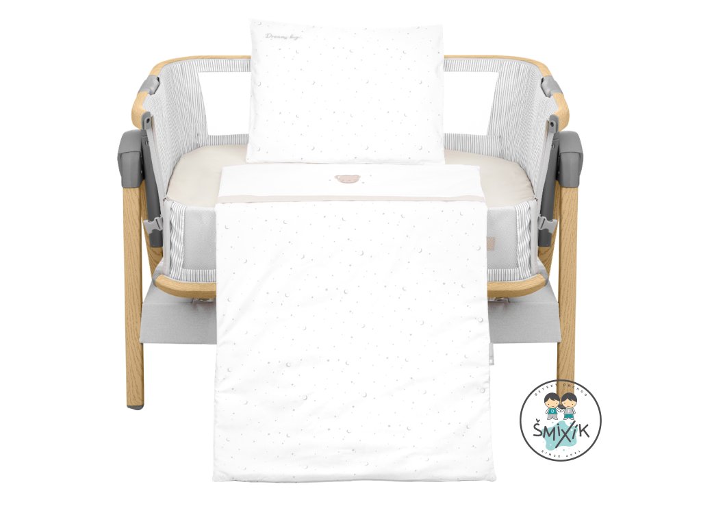 Kompletná posteľná sada do malej postieľky alebo kolísky obsahuje vankúšik, perinku, obliečky na vankúšik a perinku a naťahovacie prestieradlo. Obliečky sú vyrobené z jemnej, prémiovej 100% bavlny s Oeko-Tex® certifikáciou.