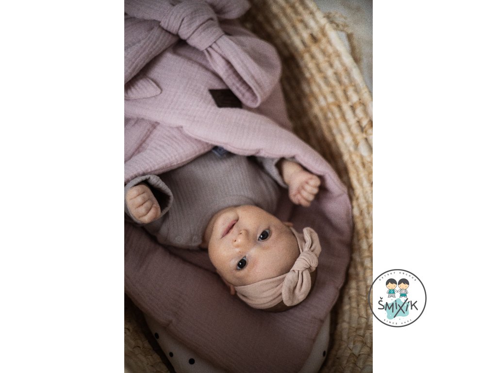 - priedušná mušelínová tkanina udržuje stálu teplotu dieťaťa