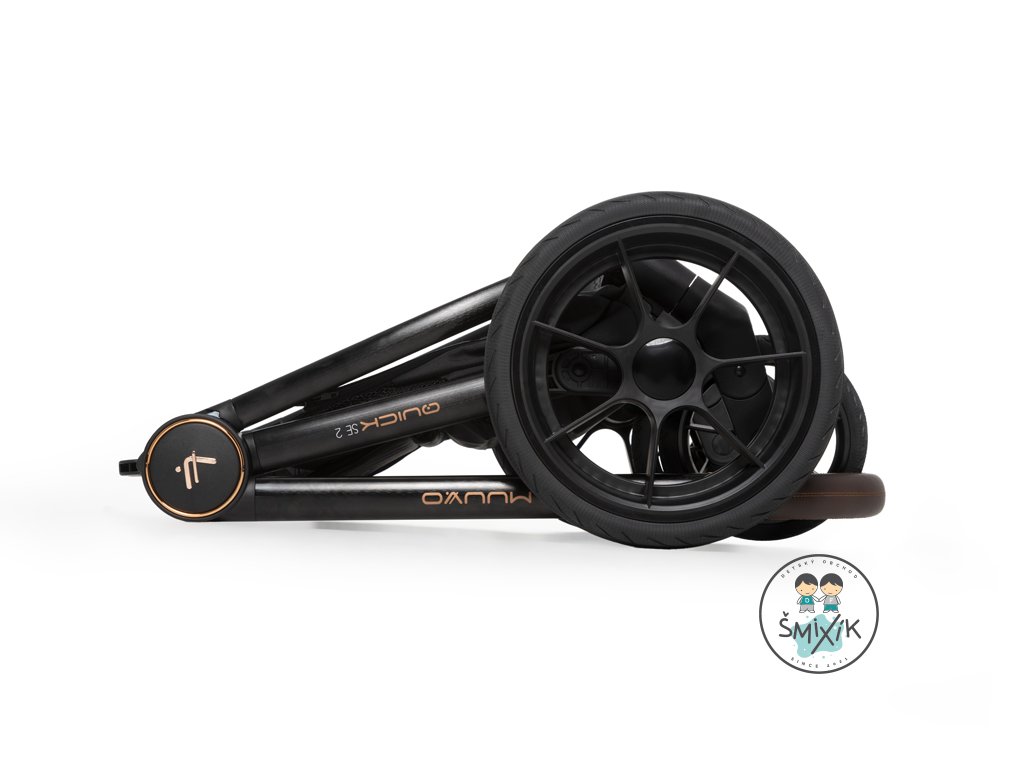 Quick SE 2 je nová edícia najpredávanejšieho modelu spoločnosti MUUVO s ešte väčším množstvom vylepšení a komfortných funkcií v kombinácii s krásnym dizajnom, ktorý nasleduje moderné trendy. Farebná škála má nový vzhľad Chromium Black, kde sa čierna látka kombinuje s čiernym čalúnením z ekokože a tmavými chrómovými ozdobnými prvkami. Kočík Quick SE 2 je vybavený perforovanou opierkou chrbta, ktorá zabezpečuje dostatočné vetranie, ako aj systém nastavenia výšky striešky UP TO YOU, ktorý umožní kočíku prevážať aj vyššie deti. Päťbodové bezpečnostné pásy sú obohatené o magnetickú pracku, ktorá uľahčuje rýchle pripútanie. Priestranná vanička so systémom Memory Buttons, vstavanou moskytiérou a slnečnou clonou na zips, obe možno upevniť priamo na rám a na pridané výškové adaptéry. Pri navrhovaní kočíkov Muuvo sa nikdy nezabúda na pohodlie rodičov - okrem pohodlného systému skladania, nastaviteľnej rukoväte a veľkého uzavretého nákupného košíka je kočík Quick SE2 vybavený úplne novou priestrannou taškou, ktorú možno zavesiť na teleskopickú rukoväť s pomocou pridaných nastaviteľných popruhov. Kočíky Muuvo obsahujú veľké, gélové, bezúdržbové kolesá s odpružením, ktoré poskytujú skvelé podmienky na chôdzu s kočíkom. Vlastnosti: - hlbokú vaničku možno nasadiť priamo na podvozok, vyšší rodičia ocenia možnosť montáže vaničky na adaptéry, ktoré zvýšia vaničku na podvozku pre lepšiu manipuláciu s dieťaťom - hlboká vanička je vybavená dvoma oknami pre lepšiu cirkuláciu vzduchu v horúcom počasí - rozšíriteľná strieška so šiltom na ochranu dieťaťa v horúcom a chladnom počasí v hlbokej aj športovej verzii - strieška s ochranným faktorom UPF50+ je zároveň vodotesná - prepracovaný dizajn – polstrovanie s geometrickým vzorom - perforovaná opierka chrbta v kombinácii s ventilačnými prvkami v športovej sedačke je ideálna na letné prechádzky - viacnásobné polohovanie opierky nôh a operadla v športovom sedadle - výsuvná opierka nôh, ktorá sa ľahko čistí - strieška športového sedadla je vybavená sieťkou pre lepšiu klímu počas horúcich dní - nastaviteľná výška striešky športového sedadla, takže kočík rastie spolu s dieťaťom - bezpečnostné pásy pre bezpečnú jazdu s dieťaťom, navyše doplnené o magnetickú sponu - bezpečnostné madlo je súčasťou balenia - teleskopická rukoväť pre rôzne výšky oboch rodičov - športovú sedačku možno nasadiť v oboch smeroch jazdy - gélové kolesá odolné voči prepichnutiu na jazdu v rôznom teréne - predné kolesá s aretáciou - priestranný nákupný košík prístupný z dvoch strán - jednoduché skladanie vrátane športového sedadla - vrátane ramenného popruhu na nosenie Súčasť balenia: - podvozok - športové sedadlo - hlboká vanička - nánožník - moskytiéra - športová a hlboká verzia - pláštenka- športová a hlboká verzia - obojstranná vložka pre športové sedadlo - upevnenie tašky - prebaľovacia taška - slnečná clona - výškové adaptéry na vaničku - súčasťou kočíka je tiež autosedačka CYBEX Aton B2 i-Size spolu s isofix základňou Technické špecifikácie: - rozmery v zloženom stave: 89-98 D x 58 Š x 96-105 V - rozmery zloženého podvozku bez sedadla: 59 D x 58 Š x 33 V - hmotnosť podvozku so športovou verziou: 10,85 kg - vnútorné rozmery hlbokej vaničky: 79,5 D X 35 Š - nosnosť: 22 kg Na podvozok kočíka sa vzťahuje 5 ročná zárukaDodatočné parametre