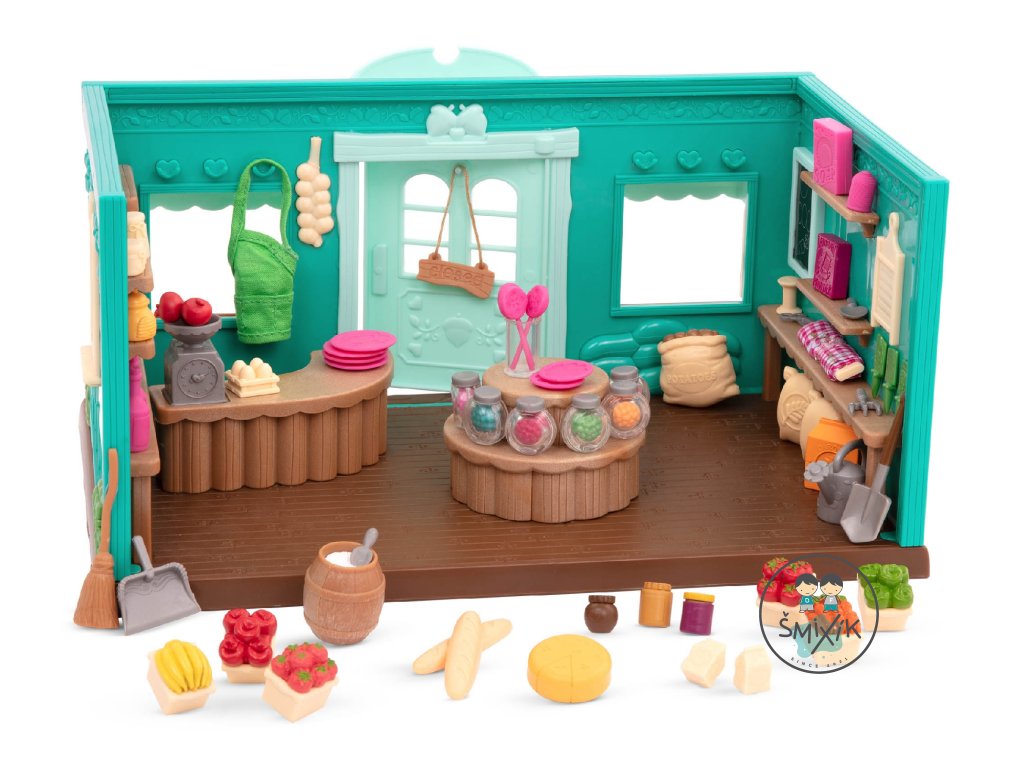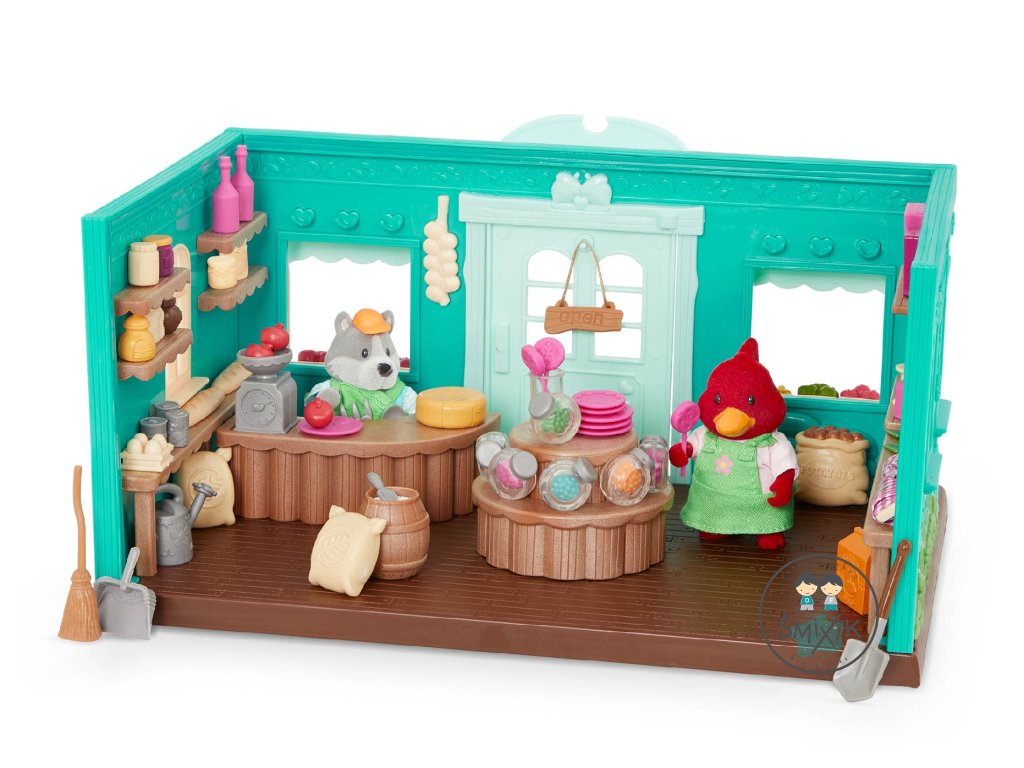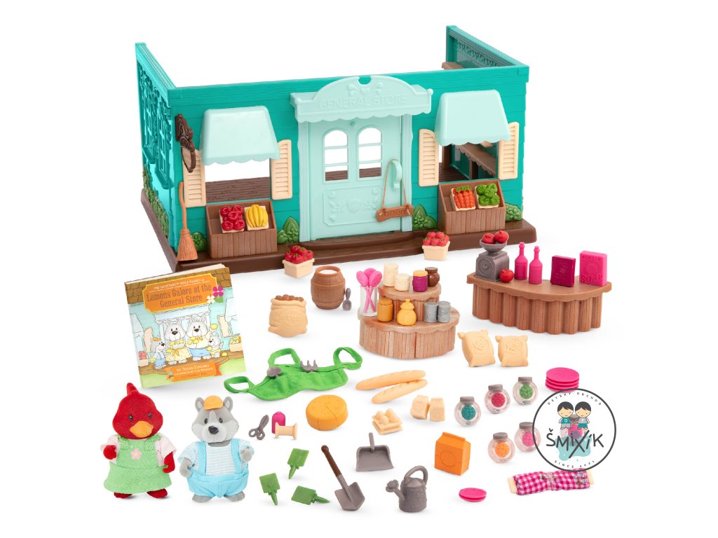 V obchode so zmiešaným tovarom si každý člen rodiniek z mestečka Honeysuckle Hollow vyberie to, čo práve potrebuje – v ponuke sú domáce a záhradnícke potreby, ale napr. aj žuvačky a cukríky! Postavičky zvieratiek - vlk Miles a kardinál Lolla - každému zákazníkovi radi poradia av obchode udržujú vzorný poriadok!