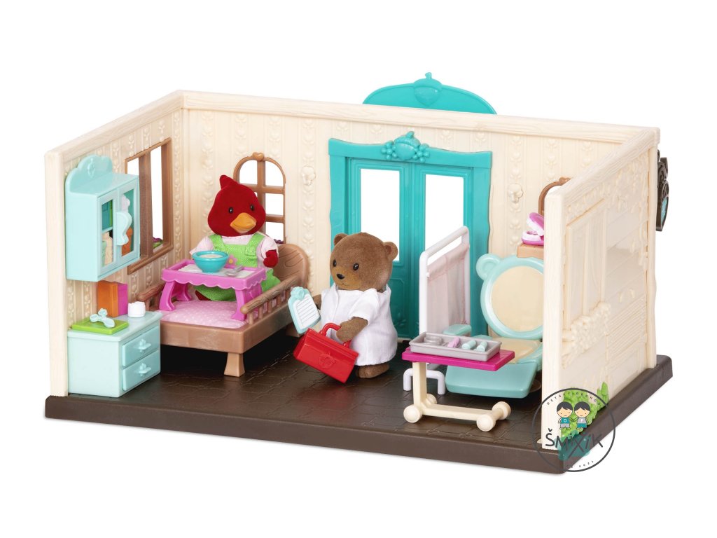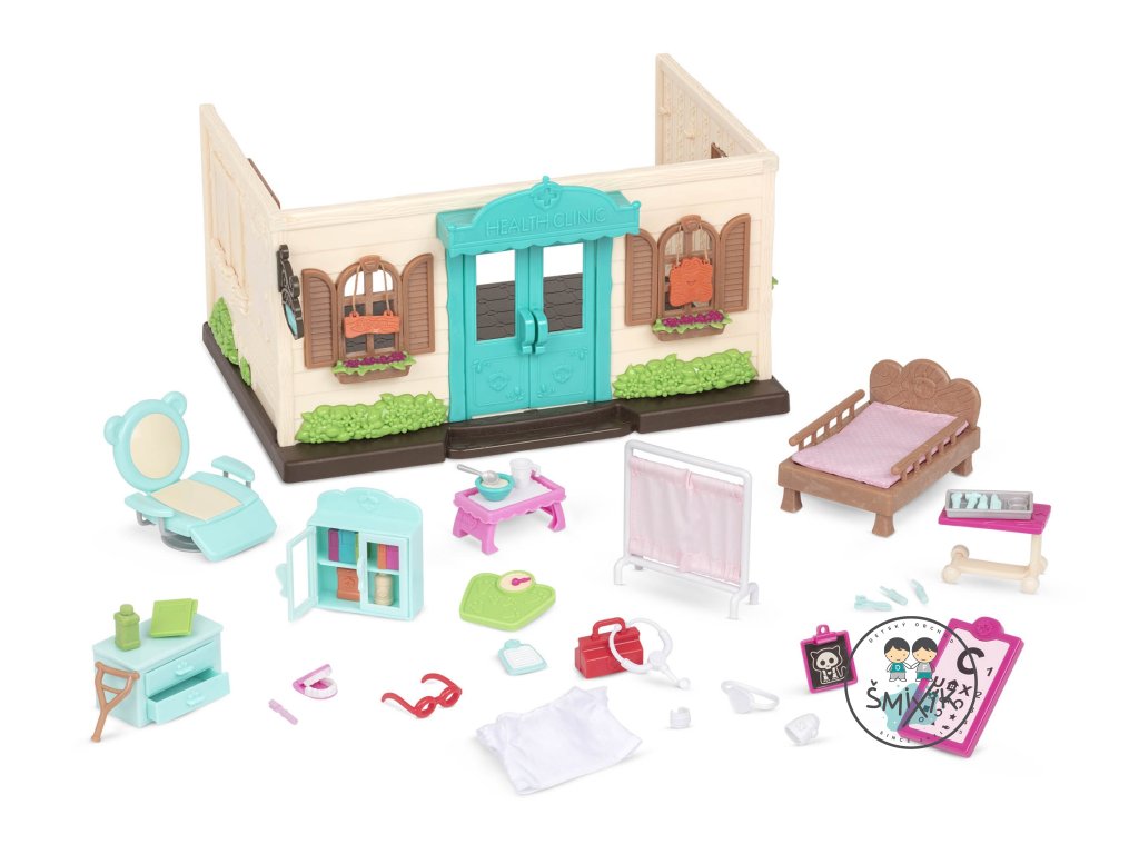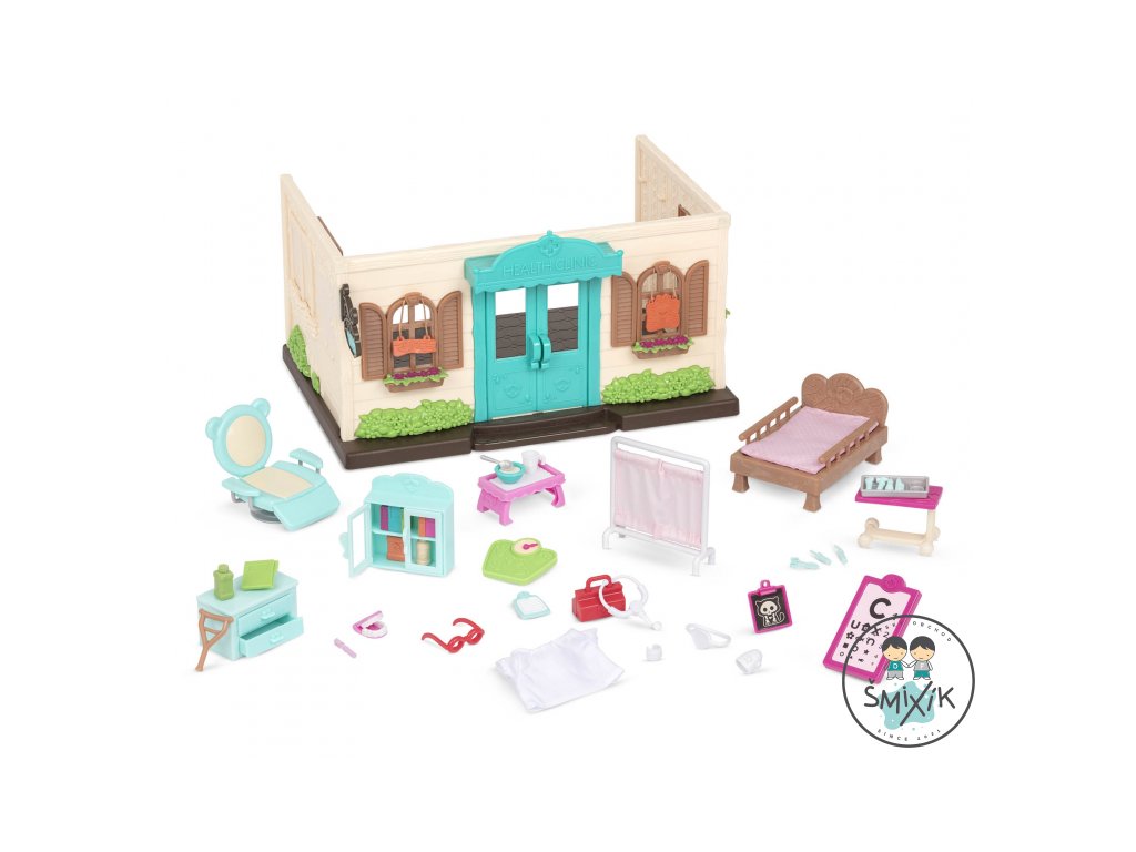 Keď niektorého z obyvateľov mestečka Honeysuckle Hollow začne trápiť zdravie, vypraví sa do ordinácie Health Clinic, kde mu pomôžu s boľavým zubom, vysokou teplotou aj odretým kolenom! Vyberte niektorú zo samostatne predávaných postavičiek zvieratiek Li'l Woodzeez a prezlečte ju do lekárskeho plášťa, ktorý je súčasťou balenia.