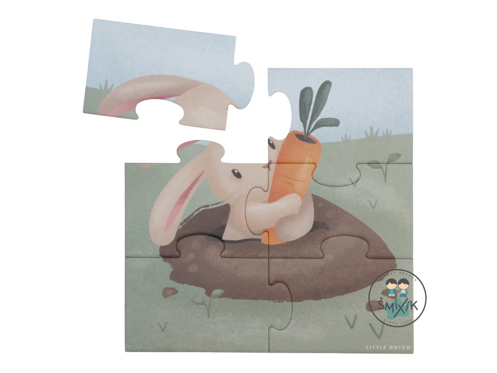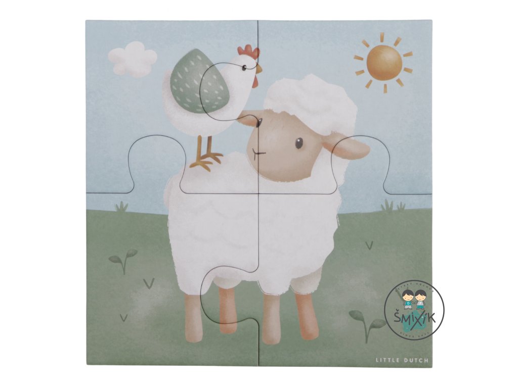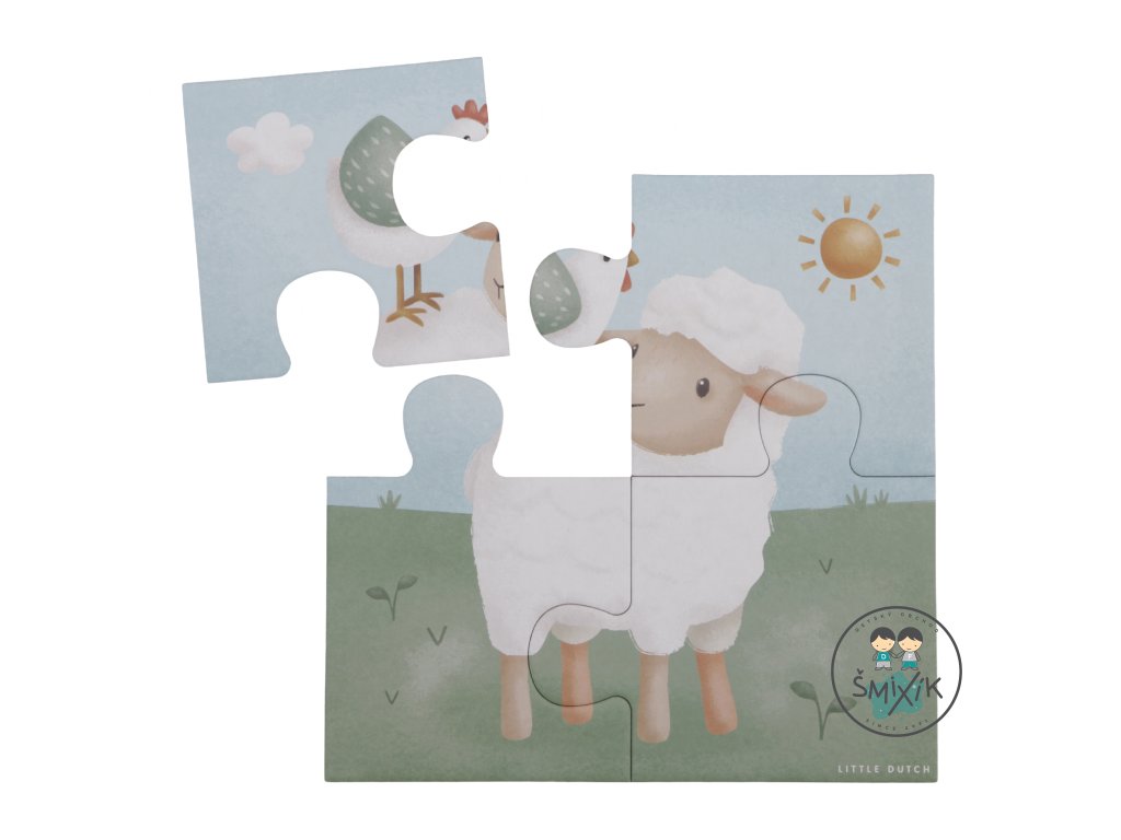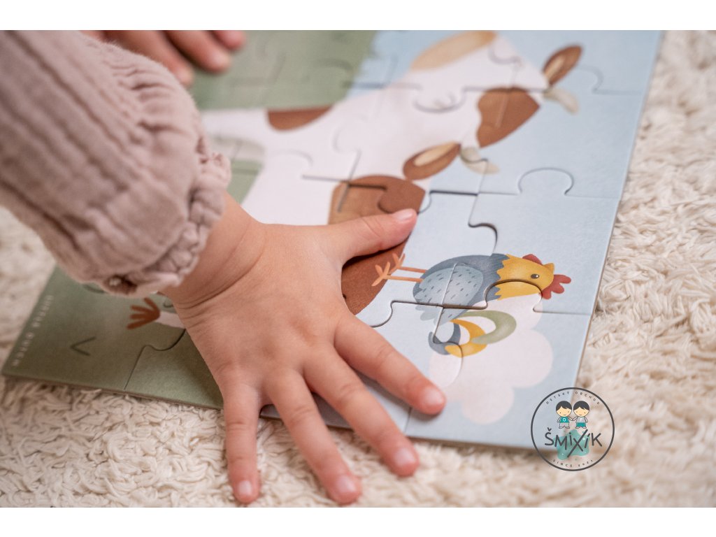 Zoznámte sa so životom na farme a skúmajte spolu s vašim dieťaťom tvary, farby aj zvieratká. Sada obsahuje 4 varianty puzzle skladačiek pre najmenších s krásnymi ilustráciami. Jednotlivé skladačky majú od 4 do 16 dielikov z pevného kartónu, ktoré sú dokonale tvarované pre malé detské ručičky.