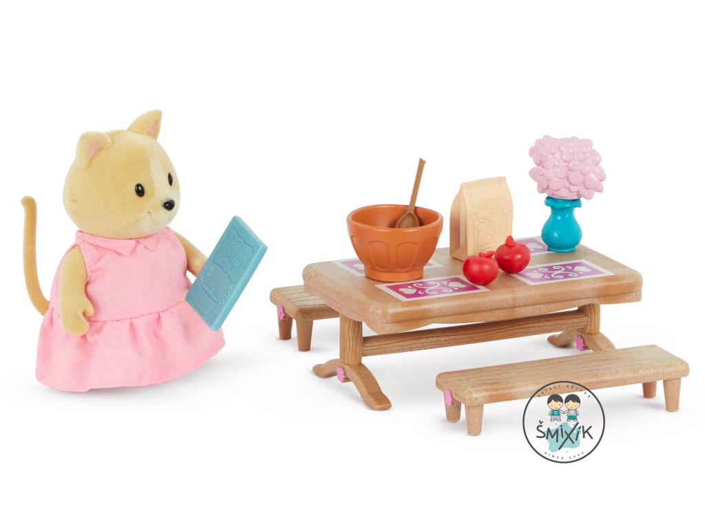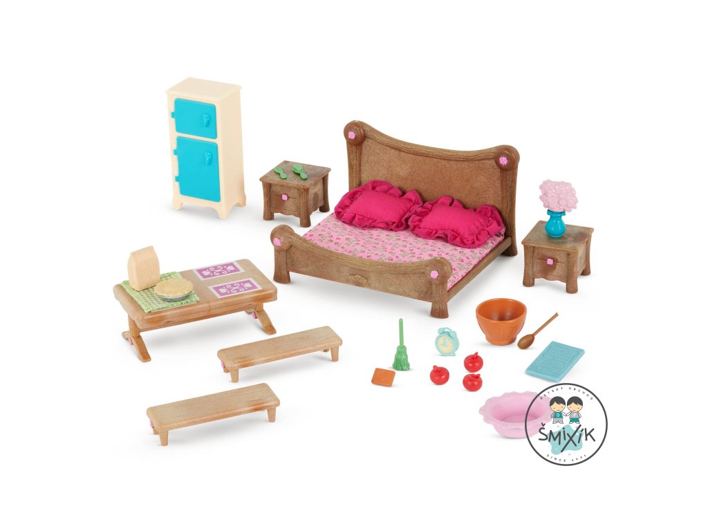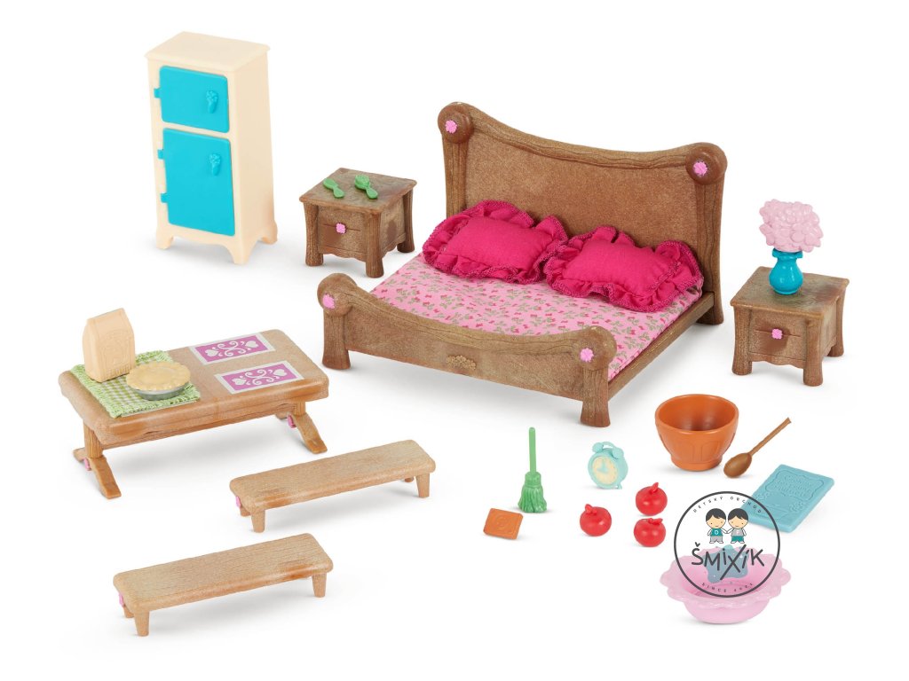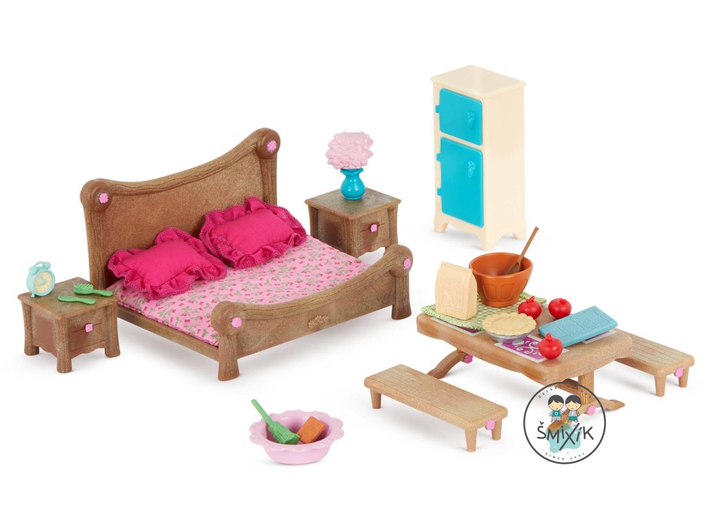 Sada nábytku vám umožní vybaviť spálňu a jedáleň v domčeku pre postavičky zvieratiek Li'l Woodzeez. Až sa po dobrej večeri budú zvieratká ukladať na spánok do pohodlnej postele, nezabudnite nastaviť budíček!Domček aj postavičky zvieratiek sa predávajú samostatne.