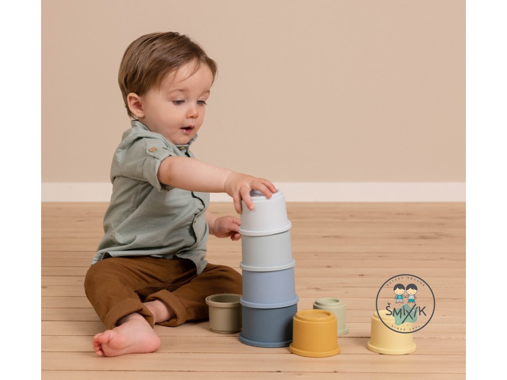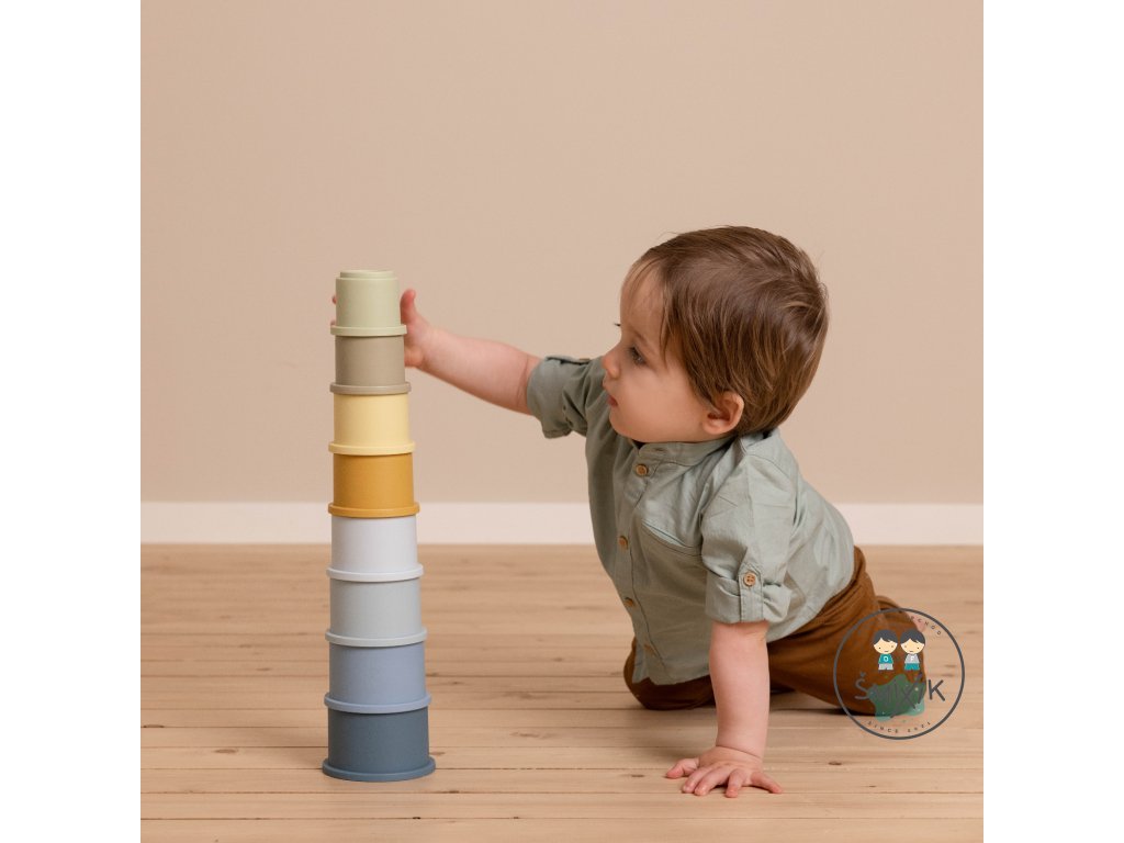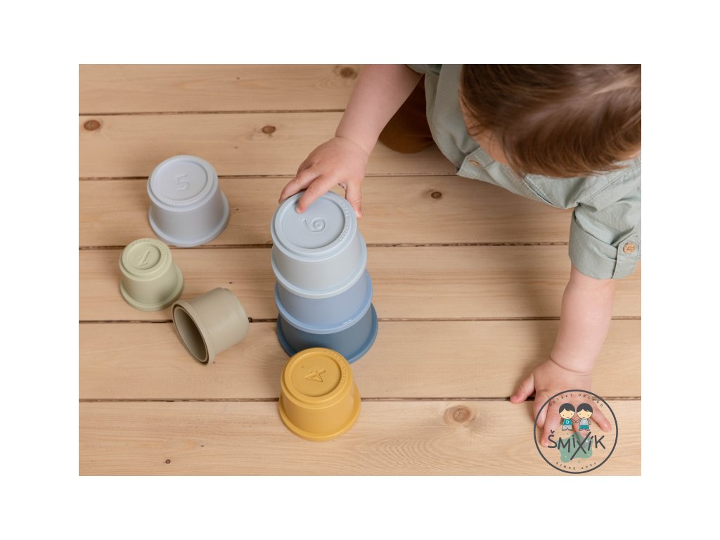 Sada kelímkov v krásnych pastelových farbách ponúka mnoho možností na hranie doma, v kúpeli aj vonku na pieskovisku. Čo môže byť zábavnejšie, než postaviť vysokú vežu a potom ju jedným mávnutím ruky zboriť!