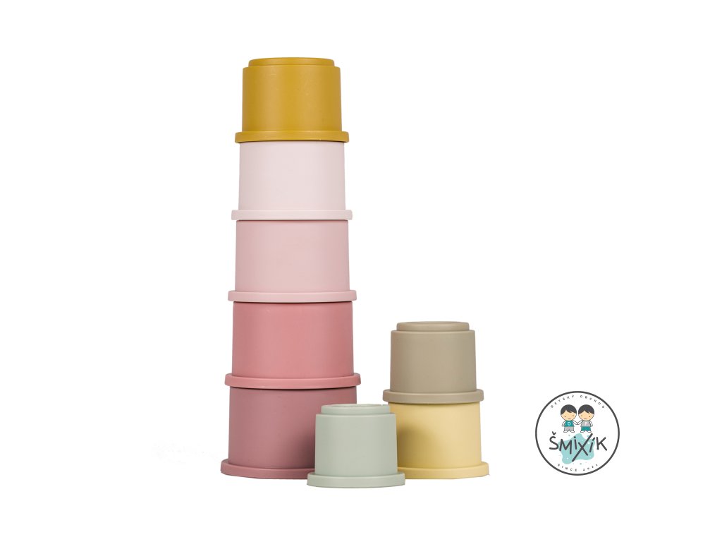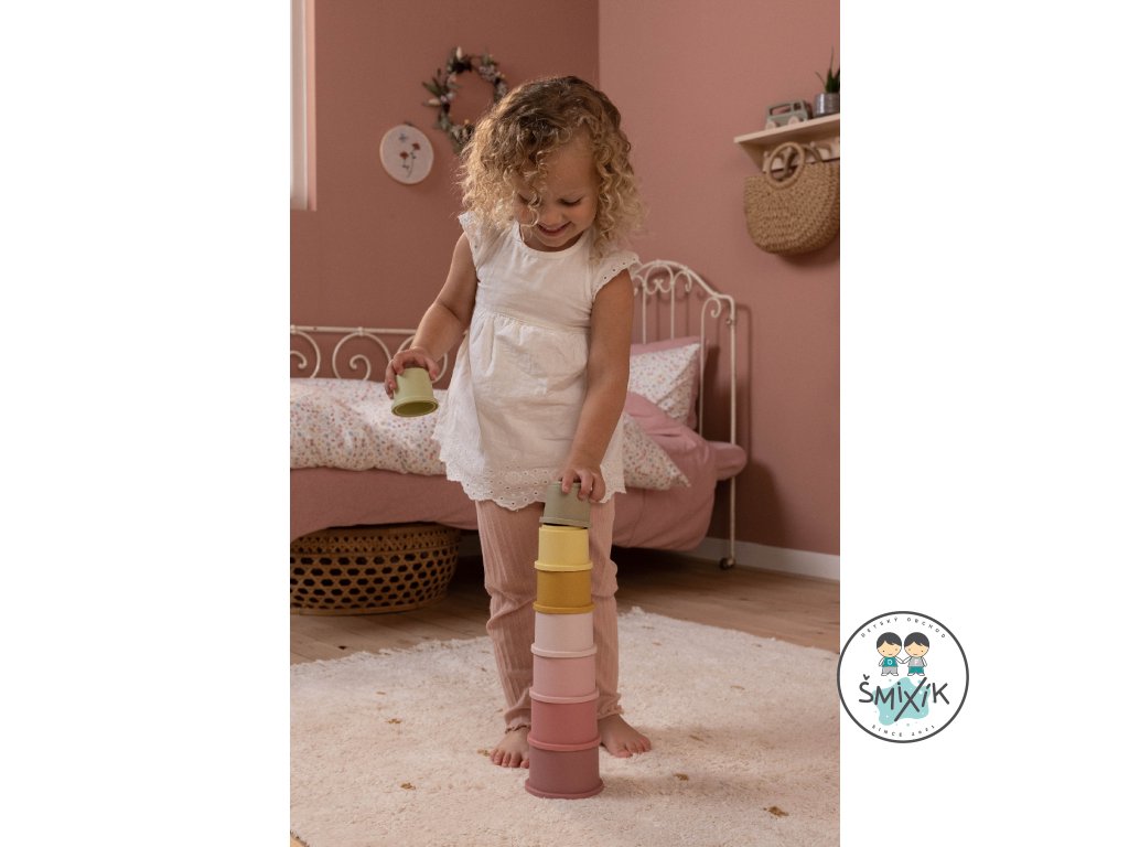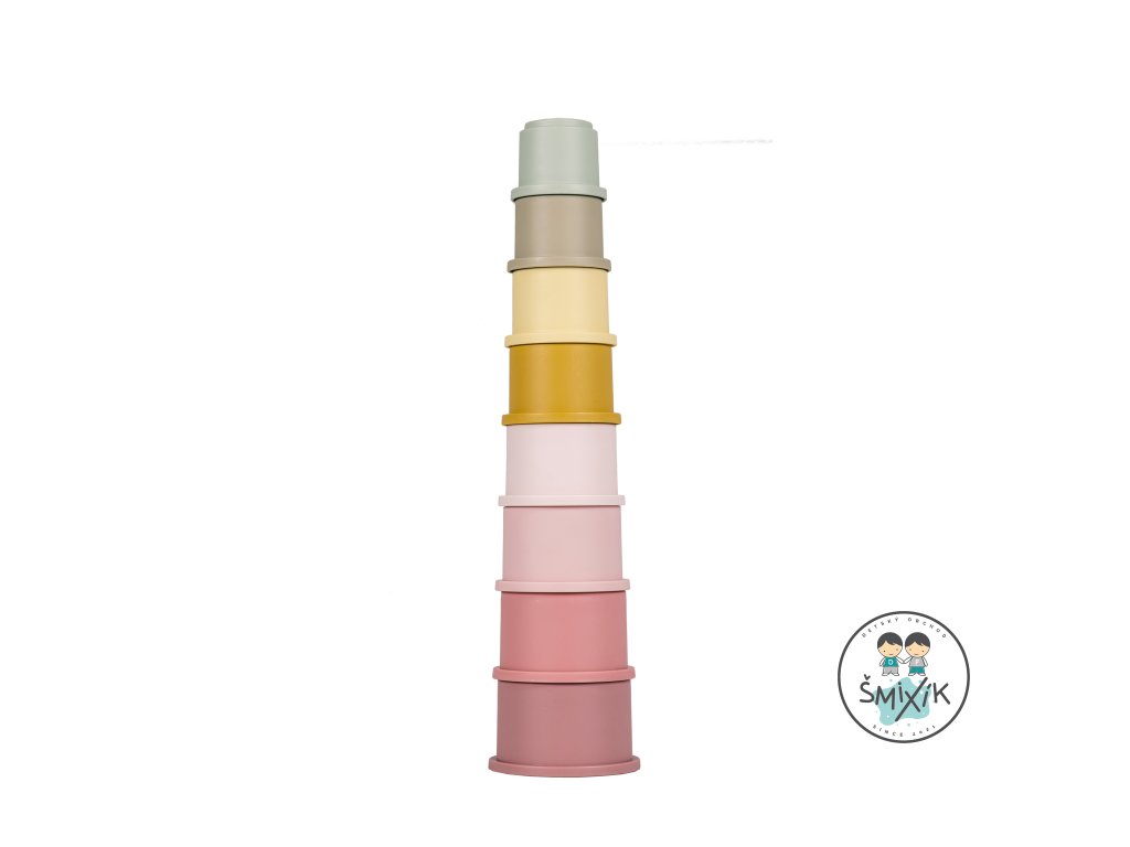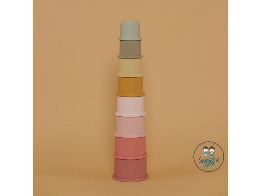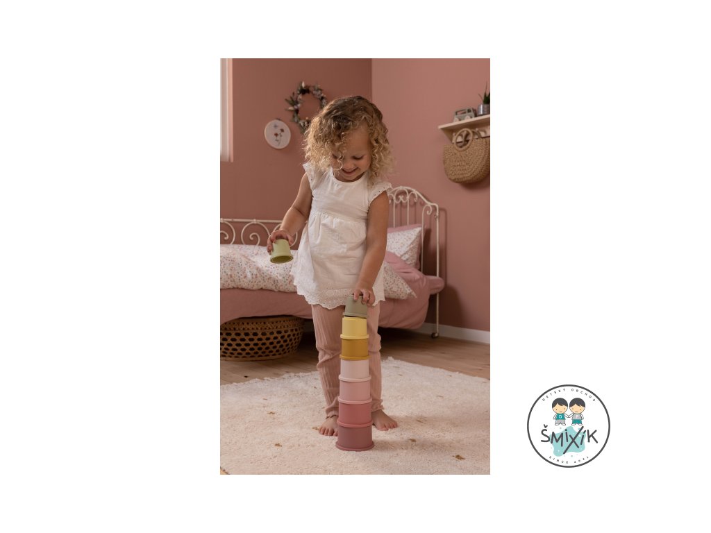 Sada kelímkov v krásnych pastelových farbách ponúka mnoho možností na hranie doma, v kúpeli aj vonku na pieskovisku. Čo môže byť zábavnejšie, než postaviť vysokú vežu a potom ju jedným mávnutím ruky zboriť!