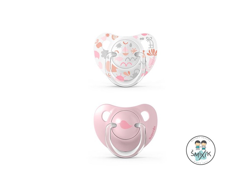 Cumlík je veľkým pomocníkom pre pokoj Vášho bábätka, či už pri spánku alebo vychádzke. Je dokázané, že sanie cumlíku uvoľňuje endorfín, takzvaný hormón šťastia, ktorý prináša bábätku príjemný pocit, ktorý ho upokojuje a konejší. Doprajte bábätku cumlík miesto prstov či pästičky, pretože tato varianta môže veľmi porušiť dentálnej vývoj. Všetky savičky i cumlíky sú podporené a vyrábané v spolupráci s Asociáciou španielskych detských ortodontistu a rešpektujú prirodzený vývoj ďasien, zubov i patra dieťaťa. Farby použité pre dekorovanie výrobkov značky Suavinex sú prírodné a netoxické.