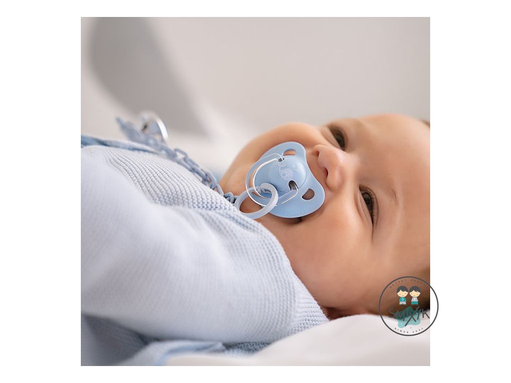 Cumlík je veľkým pomocníkom pre pokoj Vášho bábätka, či už pri spánku alebo vychádzke. Je dokázané, že sanie cumlíka uvoľňuje endorfín, takzvaný hormón šťastia, ktorý prináša bábätku príjemný pocit, ktorý ho upokojuje a konší. Doprajte bábätku cumlík namiesto prstov či pästičky, pretože tento variant môže veľmi porušiť dentálny vývoj. Všetky cumlíky aj cumlíky sú podporené a vyrábané v spolupráci s Asociáciou španielskych detských ortodontistov a rešpektujú prirodzený vývoj ďasien, zubov i podnebia dieťaťa. Farby použité na dekorovanie výrobkov značky Suavinex sú prírodné a netoxické.