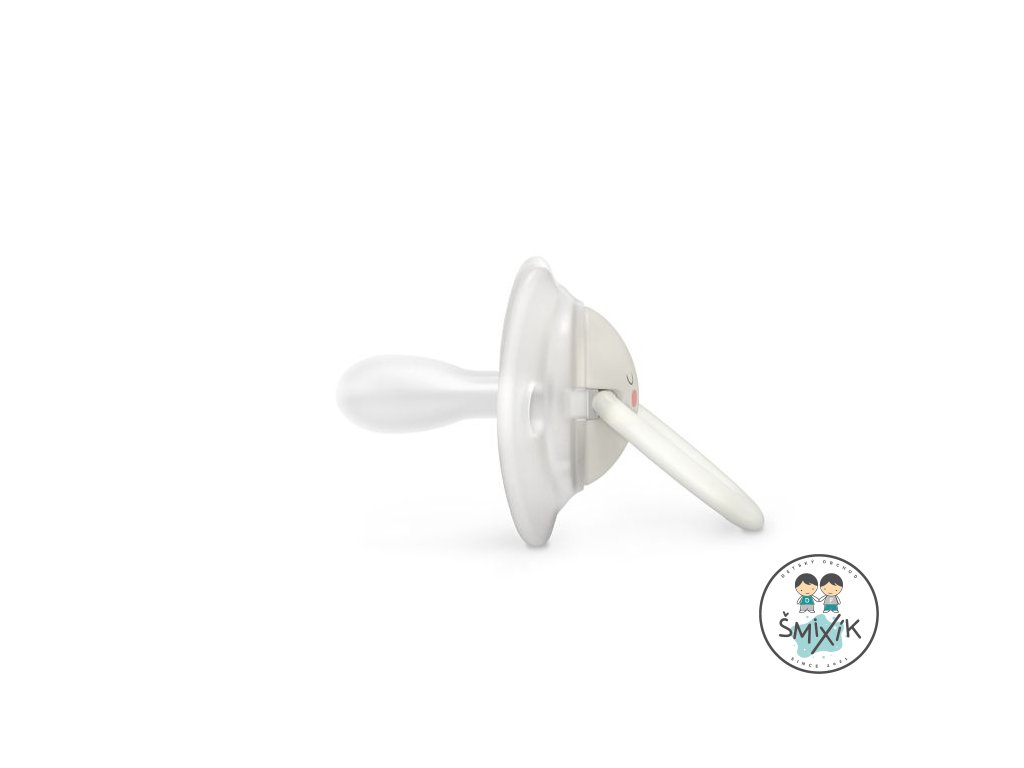 Je reverzibilný, preto sa nemusíte báť, že byste cumlík vložili do úst bábätka obrátene. Tenký krk cumlíka redukuje dráždivý kontakt medzi cumlíkom a rezákmi. Širšia čast cumlíka krásne prenáša tlak vyvíjaný na ďasná / zuby.