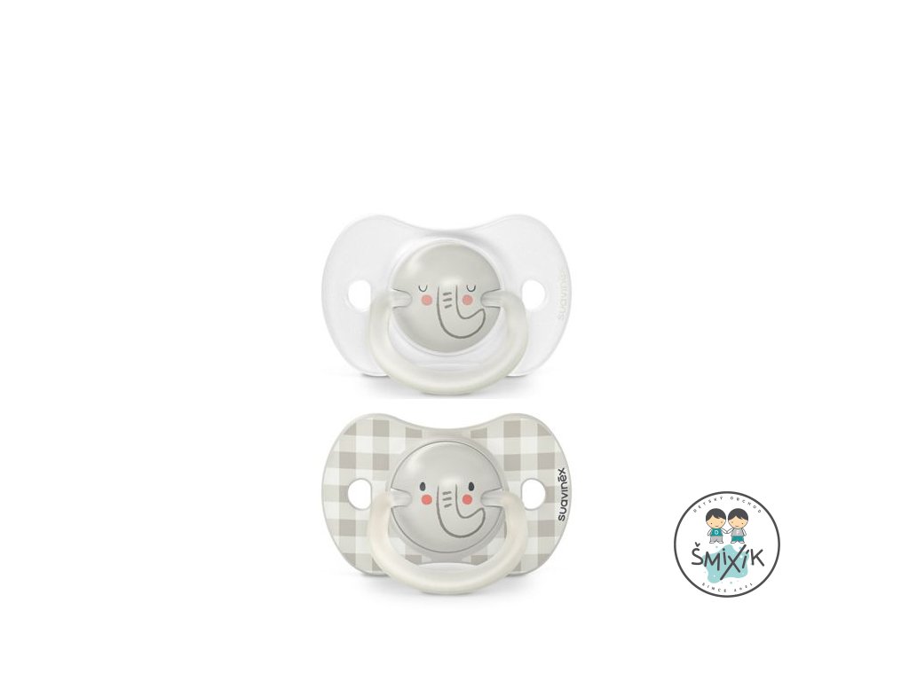 SUAVINEX | Cumlík DEŇ&NOC fyziologický silikón 6-18 m 2ks - sivý slon