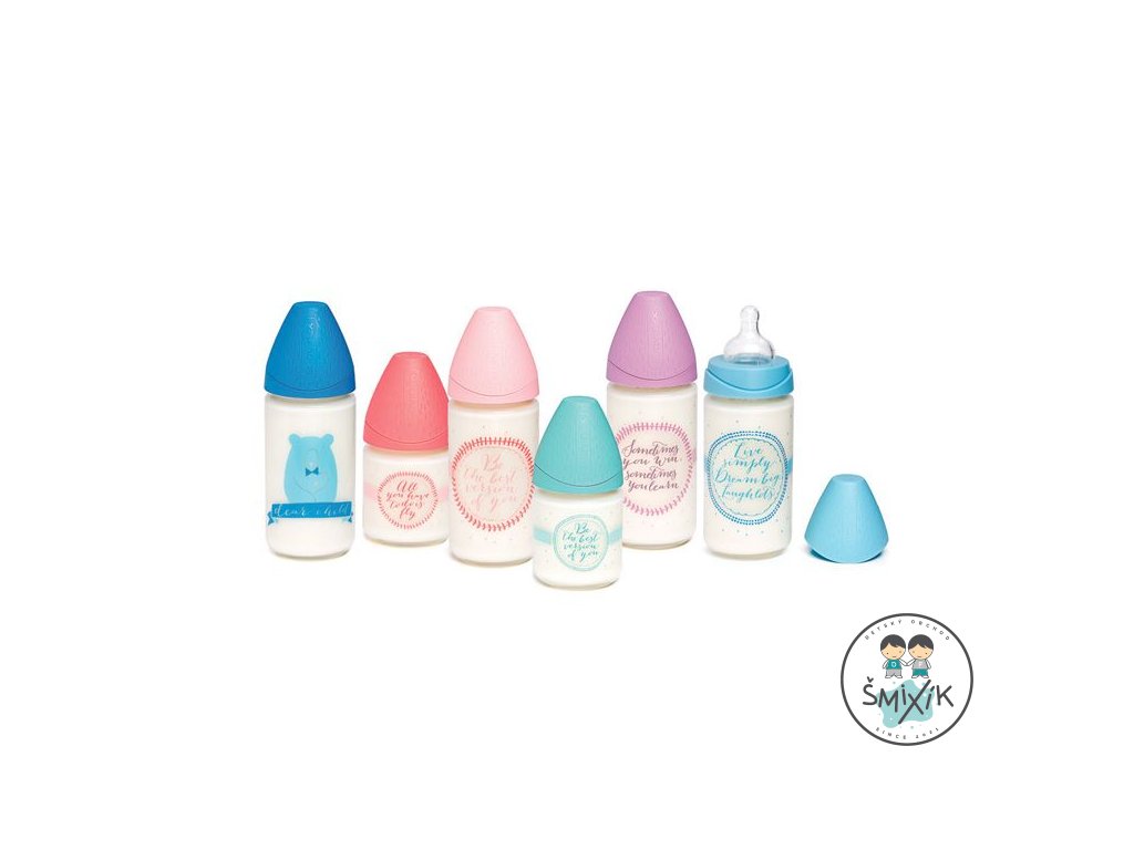 Sklenená dojčenská fľaša z kolekcie Meaningful Life má anatomický silikónový náhradný cumlík s veľkosťou prietoku S, čo je pomalý prietok. Vďaka ventilkům umiestneným na hornej hrane náhradného cumlíka napomáhajú predchádzať čkaniu a kolikám. Objavte čaro skla pri kŕmení či podávaní nápojov bábätku. Sklo do seba neabsorbuje pachy z predchádzajúcej stravy a nápojov. Veľmi dobre sa čistí a nezanecháva po ovocných šťavách na vnútornej stene fľaše neestetické zafarbenie. Kolekcia s názvom ""Meaningful Life"" poukazuje na zmysluplný život rodiny, ktorá sa láskyplne stará o jej nový prírastok. Práve prichádzajúce dieťatko radostne pozdvihuje radostnú náladu v rodine a otvára srdce všetkým zúčastneným. Kolekcia je inšpirovaná nápady prarodičov a nesie so sebou prvky prírodných materiálov, akými je sklo, drevo, textílie a pletený vzor vlny. Objem: 120 ml. Tvar náhradního cumlíka: anatomický. Veľkosť prietoku náhradního cumlíka: S (pomalý prietok). Materiál náhradního cumlíka: silikón. Odporúčaný vek: 0-6 mesiacov. Vyrobené v rámci EÚ. Všetky výrobky sú bez BPA, klinicky testované a vyrobené španielskym farmaceutickým výrobcom.Diskusia