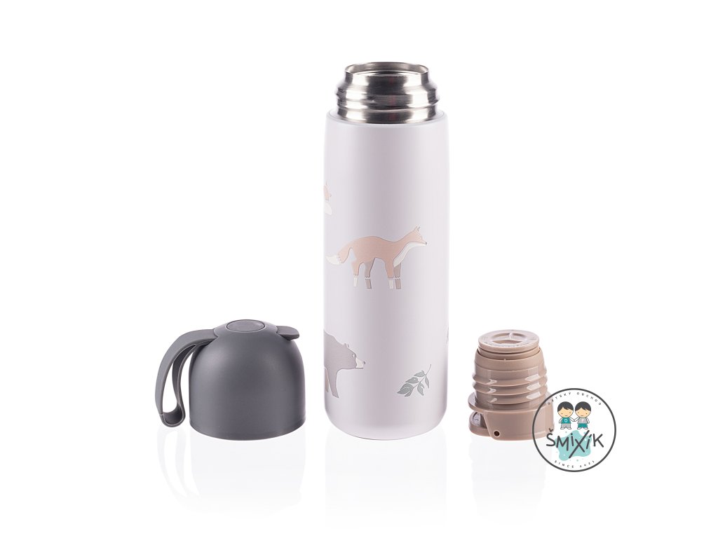 Kvalitná termoska na tekutiny s objemom 400 ml udrží horúce nápoje až 12 hodín, studené nápoje až 24 hodín. Je vyrobená z kvalitnej nehrdzavejúcej ocele, ktorá je odolná proti korózii. Tesne priliehajúce viečko zaisťuje, že termoska nevyteká, a vrchný uzáver na pohodlné nalievanie zaručuje, že sa vám tekutina nevyleje ani pri jazde autom po nerovnej ceste, vďaka dvojitému uzáveru si môžete byť istí aj tým, že dieťa tekutinu z termosky nevyleje. Viečko termosky možno použiť ako hrnček.
