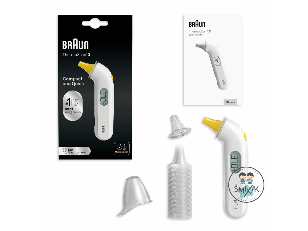 BRAUN ThermoScan 3 IRT3030 je spoľahlivý a praktický ušný teplomer, ktorý je ideálny pre rodičov, ktorí hľadajú rýchly, presný a bezpečný spôsob merania teploty svojich detí.